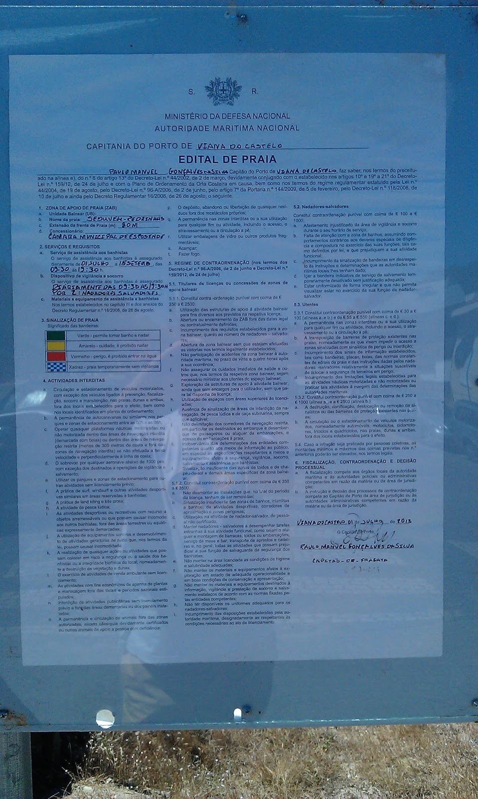 Estão de parabéns o Sr. Presidente da Câmara Municipal de Esposende, pelo pedido e o Sr. Capitão-de-Fragata, Paulo Manuel Gonçalves da Silva, da Capitania do Porto de Viana do Castelo pela cedência da concessão, pois aqui demonstram a sua sensibilidade e preocupação, pelos afogamentos que houve nos anos anteriores.