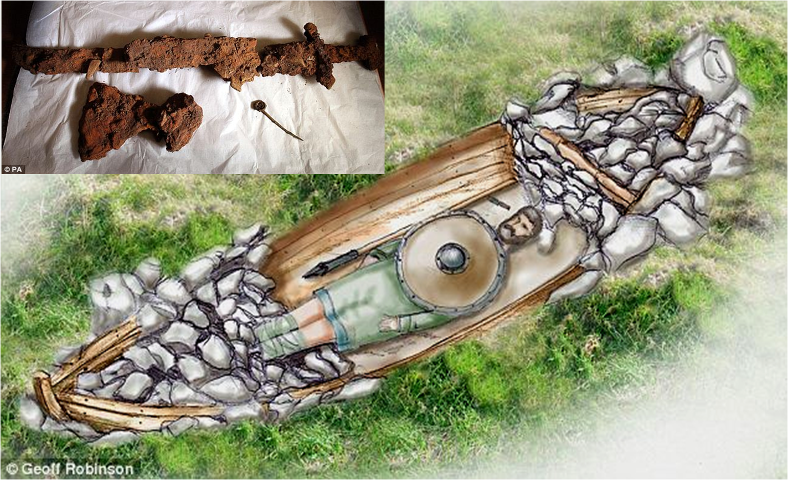 Um barco funerário viking completamente intacto foi encontrado pela primeira vez na costa noroeste da Escócia, segundo arqueólogos britânicos. Objetos de bronze, incluindo uma faca, um machado e uma espada, foram encontrados juntamente com os restos do corpo e do barco onde ele foi enterrado. O sítio arqueológico, que fica na região de Ardnamurchan, teria mais de mil anos. De acordo com especialistas, as armas indicam que o homem era um guerreiro viking de alta patente. No entanto, os objetos tiveram que passar por um raio-X para que se conhecesse mais detalhes sobre eles, já que estavam cobertos de ferrugem. O hábito de enterrar os pertences do falecido junto com seu corpo fazia parte da cultura viking. VEJA VÍDEO